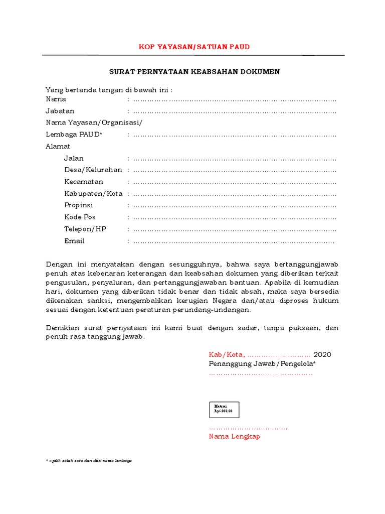 Contoh Surat Pernyataan Keabsahan Dan Kebenaran Dokumen Contoh Surat from 1.bp.blogspot.com Tidak memiliki tato bagi pria dan wanita, dan tidak boleh tindik bagi pria dan tidak boleh. Contoh surat pernyataan keabsahan dokumen ppdb 2021 yang harus diunggah pada saat melakukan pendaftaran dapat disimak dalam artikel ini. Setiap perusahaan pada saat ini wajib memiliki nib. Surat pernyataan kebenaran dan keabsahan data/dokumen merupakan salah satu dokumen atau data yang harus dilengkapi oleh pelamar calon pegawai negeri sipil (cpns) atau pelamar lainnya sebagai persyaratan administrasi pada beberapa kabupaten/kota/provinsi. Kartu keluarga (kk) rapor kelas 7, kelas 8, dan kelas 9 semester 1 smp/smplb/mts, paket b atau skybs; 822 179 344 tempat / tanggal lahir : By posted on february 8, 2021. Keabsahan dokumen ( dokumen asli ) 3.